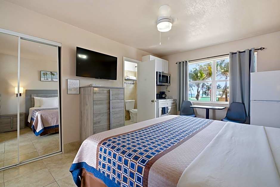 In addition to an ocean view and king bed, this suite features a full kitchen with dining area and sofa. A flat-screen cable TV is also included.